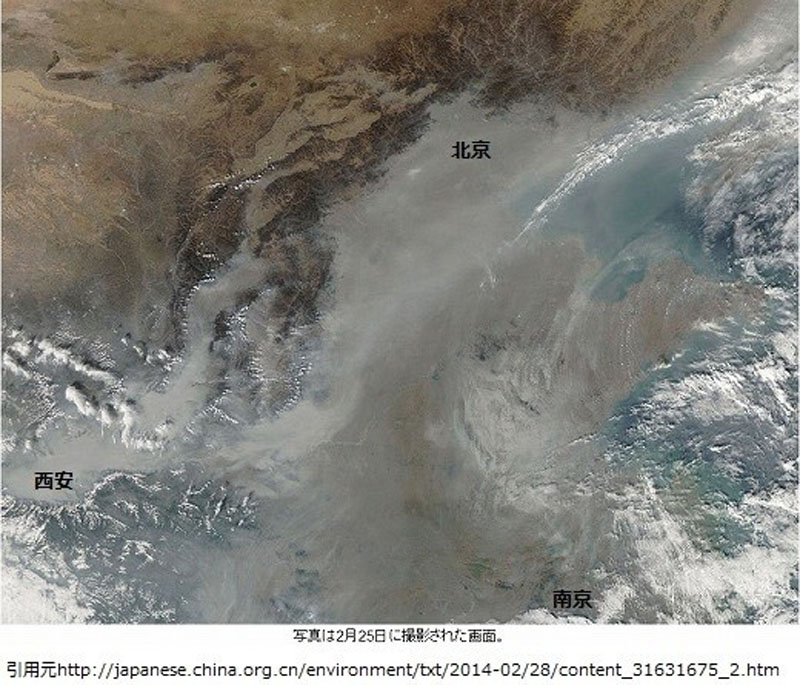| ■ 中国重篤スモッグの巨大さが分かる衛星写真 |